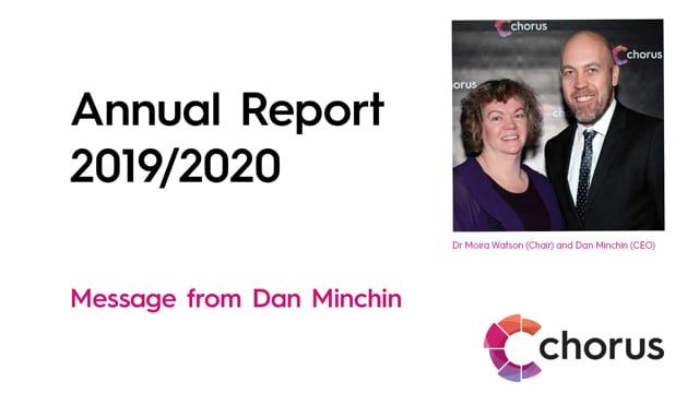 On reflection, though, and thanks to the extraordinary effort and commitment of all of Chorus – customers, volunteers, staff, directors, and supporters – we have been able to achieve and, in fact, accelerate our parallel goals of consolidation and innovation in 2019-20.
